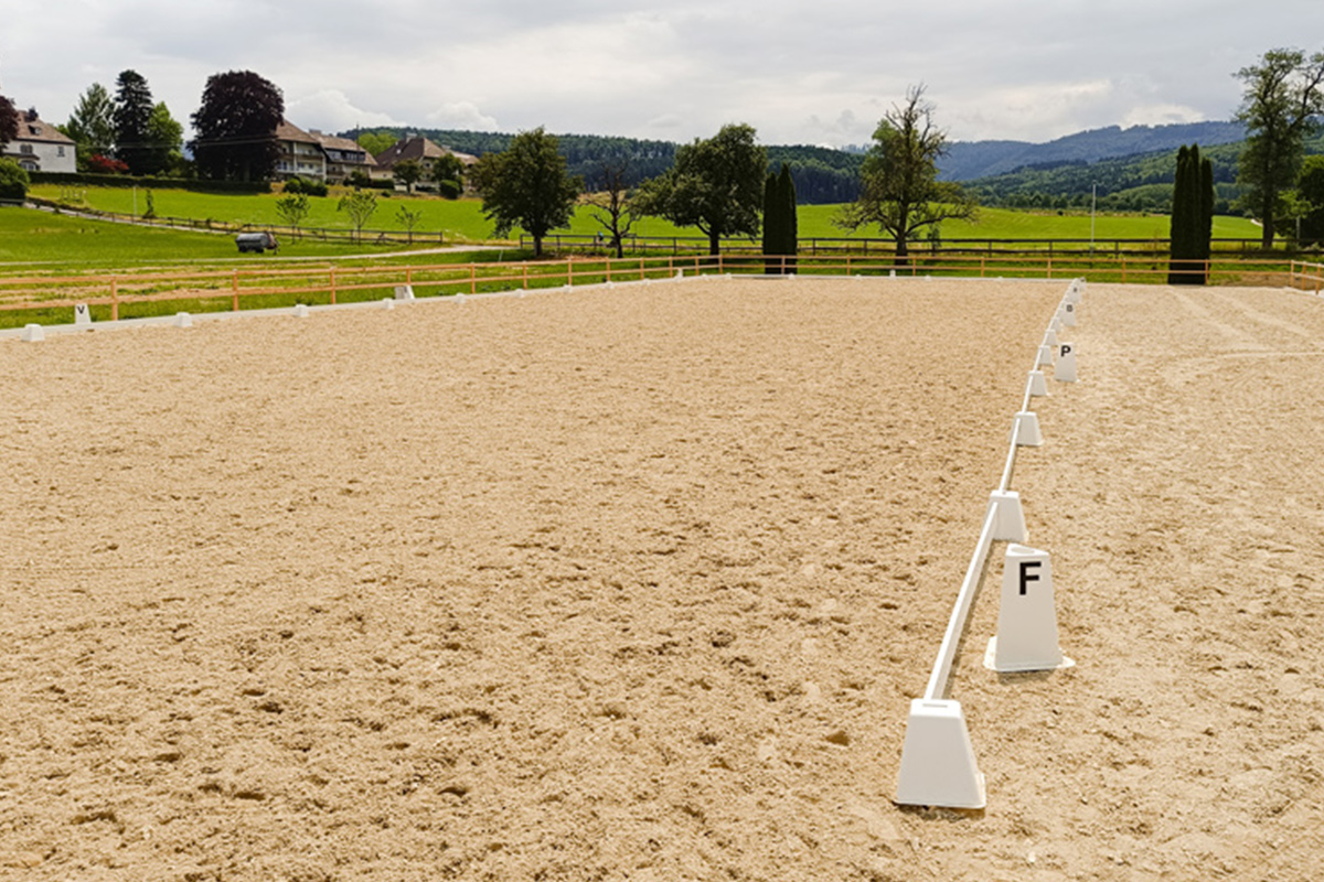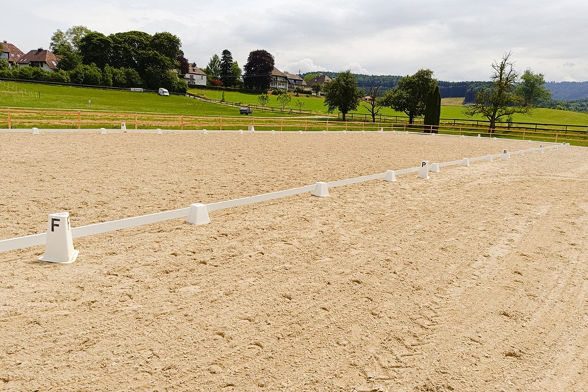 Zusätzlich bieten wir ein großes Dressurviereck, das auch als Turnier-Vorbereitungsplatz genutzt wird.