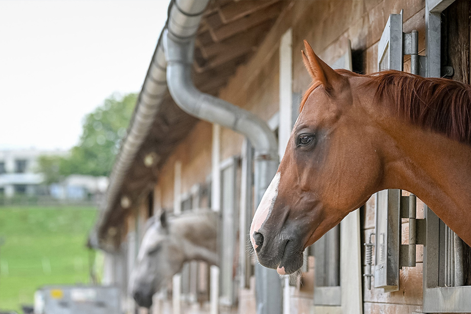 Für unsere Pferde stehen helle, luftige Innen-, Außen- und Paddockboxen zur Verfügung. Zu jeder Box gehört ein geräumiger Schrank in einer unserer abschließbaren Sattelkammern. Für die Pferdepflege stehen 2 Waschplätze zur Verfügung, Warmwasser ist vorhanden.