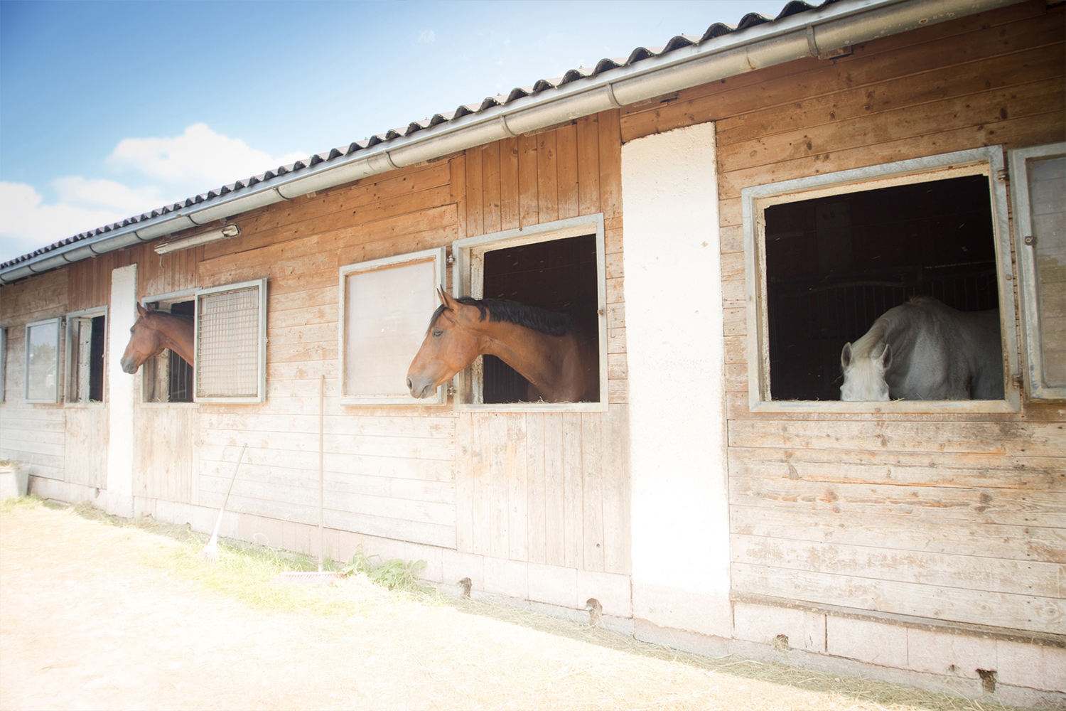 Unsere Boxen befinden sich im geschichtsträchtigen Gewölbestall (Innenboxen) sowie im Anbau an die Reithalle (Außenboxen).